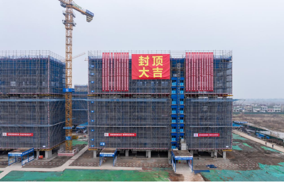 2月3日,贵池现代农村示范区乡村建设项目—贵池区2023年棚户区改造秋江街道梅里片区A区一期工程迎来重大建设节点,12栋住宅楼全部实现主体结构封顶,向早日交付迈出关键一步。